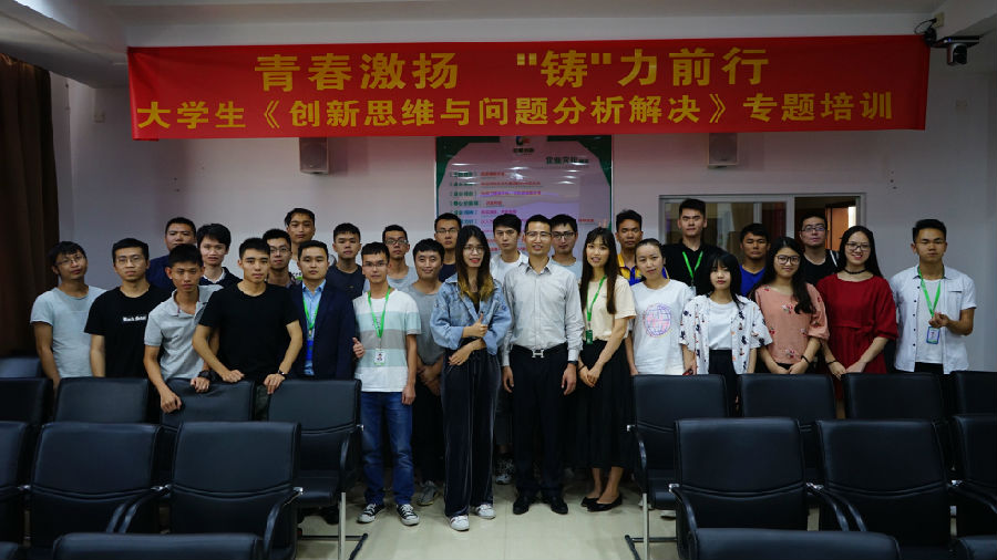為提高大學(xué)生問題分析和解決的能力和創(chuàng)新意識(shí),2019年11月1日至2日,冠豪高新外聘講師對2017-2019屆27名大學(xué)生進(jìn)行為期兩天的《創(chuàng)新思維與問題分析解決》專題培訓(xùn),并于11月3日開展了戶外拓展活動(dòng)。